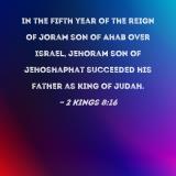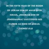 In the fifth year of the reign of Joram son of Ahab over Israel, Jehoram son of Jehoshaphat succeeded his father as king of Judah.