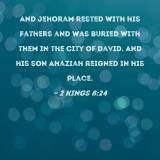 And Jehoram rested with his fathers and was buried with them in the City of David. And his son Ahaziah reigned in his place.