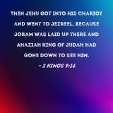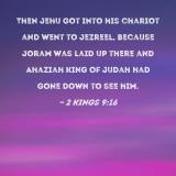 Then Jehu got into his chariot and went to Jezreel, because Joram was laid up there and Ahaziah king of Judah had gone down to see him.