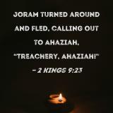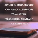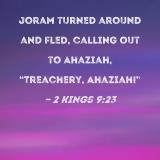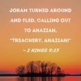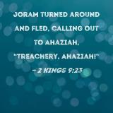 Joram turned around and fled, calling out to Ahaziah, "Treachery, Ahaziah!"