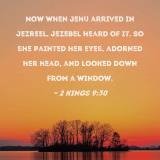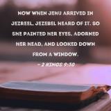 Now when Jehu arrived in Jezreel, Jezebel heard of it. So she painted her eyes, adorned her head, and looked down from a window.