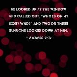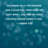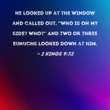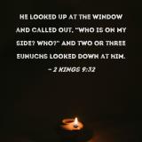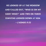 He looked up at the window and called out, "Who is on my side? Who?" And two or three eunuchs looked down at him.