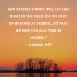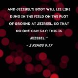 And Jezebel's body will lie like dung in the field on the plot of ground at Jezreel, so that no one can say: This is Jezebel.'"