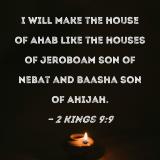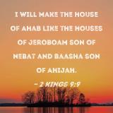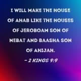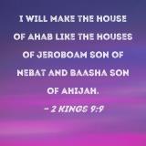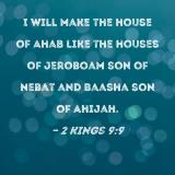 I will make the house of Ahab like the houses of Jeroboam son of Nebat and Baasha son of Ahijah.
