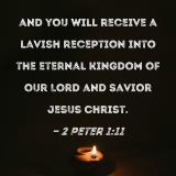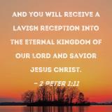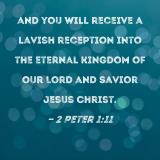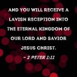 and you will receive a lavish reception into the eternal kingdom of our Lord and Savior Jesus Christ.