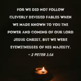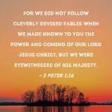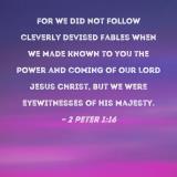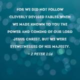 For we did not follow cleverly devised fables when we made known to you the power and coming of our Lord Jesus Christ, but we were eyewitnesses of His majesty.