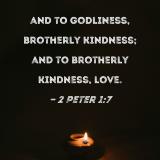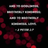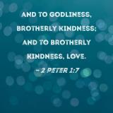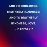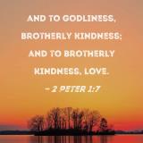 and to godliness, brotherly kindness; and to brotherly kindness, love.