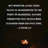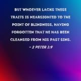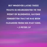 But whoever lacks these traits is nearsighted to the point of blindness, having forgotten that he has been cleansed from his past sins.