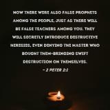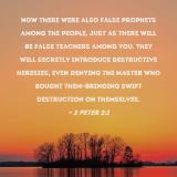 Pictures and Artwork Now there were also false prophets among the people, just as there will be false teachers among you. They will secretly introduce destructive heresies, even denying the Master who bought them--bringing swift destruction on themselves. |