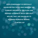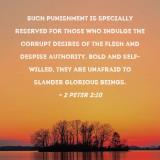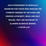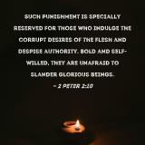 Such punishment is specially reserved for those who indulge the corrupt desires of the flesh and despise authority. Bold and self-willed, they are unafraid to slander glorious beings.
