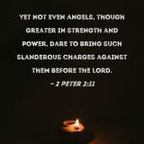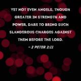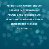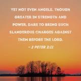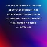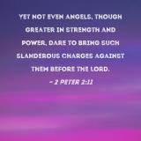 Yet not even angels, though greater in strength and power, dare to bring such slanderous charges against them before the Lord.