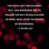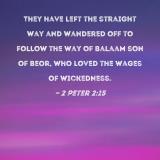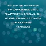 They have left the straight way and wandered off to follow the way of Balaam son of Beor, who loved the wages of wickedness.
