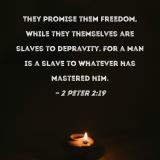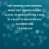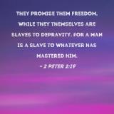 They promise them freedom, while they themselves are slaves to depravity. For a man is a slave to whatever has mastered him.