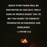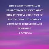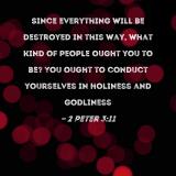Since everything will be destroyed in this way, what kind of people ought you to be? You ought to conduct yourselves in holiness and godliness