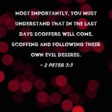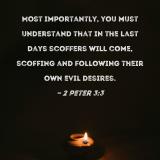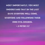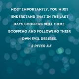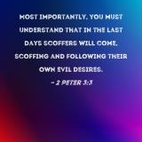 Most importantly, you must understand that in the last days scoffers will come, scoffing and following their own evil desires.