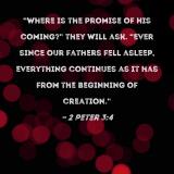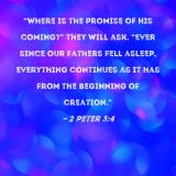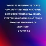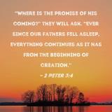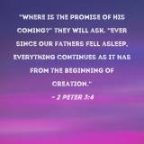 "Where is the promise of His coming?" they will ask. "Ever since our fathers fell asleep, everything continues as it has from the beginning of creation."