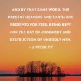 And by that same word, the present heavens and earth are reserved for fire, being kept for the day of judgment and destruction of ungodly men.