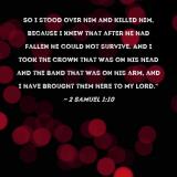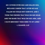 So I stood over him and killed him, because I knew that after he had fallen he could not survive. And I took the crown that was on his head and the band that was on his arm, and I have brought them here to my lord."