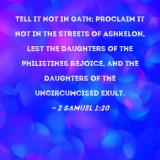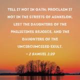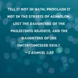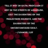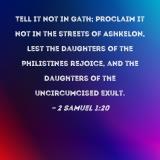 Tell it not in Gath; proclaim it not in the streets of Ashkelon, lest the daughters of the Philistines rejoice, and the daughters of the uncircumcised exult.