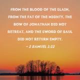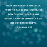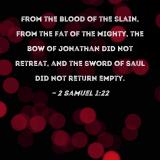 From the blood of the slain, from the fat of the mighty, the bow of Jonathan did not retreat, and the sword of Saul did not return empty.