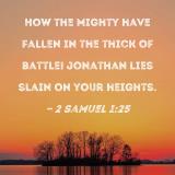 How the mighty have fallen in the thick of battle! Jonathan lies slain on your heights.