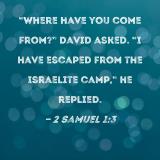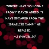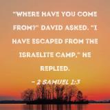 "Where have you come from?" David asked. "I have escaped from the Israelite camp," he replied.