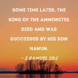Some time later, the king of the Ammonites died and was succeeded by his son Hanun.