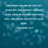 And when the men of the city came out and fought against Joab, some of David's servants fell, and Uriah the Hittite also died.