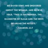 So David sent and inquired about the woman, and he was told, "This is Bathsheba, the daughter of Eliam and the wife of Uriah the Hittite."