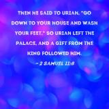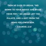 Then he said to Uriah, "Go down to your house and wash your feet." So Uriah left the palace, and a gift from the king followed him.