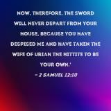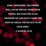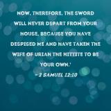 Now, therefore, the sword will never depart from your house, because you have despised Me and have taken the wife of Uriah the Hittite to be your own.'