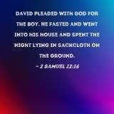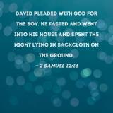 David pleaded with God for the boy. He fasted and went into his house and spent the night lying in sackcloth on the ground.