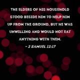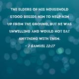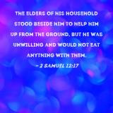The elders of his household stood beside him to help him up from the ground, but he was unwilling and would not eat anything with them.
