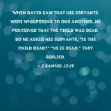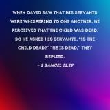 When David saw that his servants were whispering to one another, he perceived that the child was dead. So he asked his servants, "Is the child dead?" "He is dead," they replied.