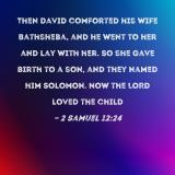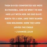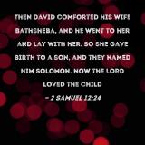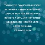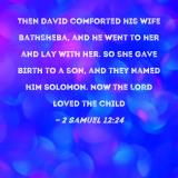 Then David comforted his wife Bathsheba, and he went to her and lay with her. So she gave birth to a son, and they named him Solomon. Now the LORD loved the child