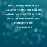 David burned with anger against the man and said to Nathan: "As surely as the LORD lives, the man who did this deserves to die!