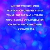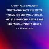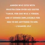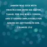 Amnon was sick with frustration over his sister Tamar, for she was a virgin, and it seemed implausible for him to do anything to her.