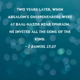 Two years later, when Absalom's sheepshearers were at Baal-hazor near Ephraim, he invited all the sons of the king.