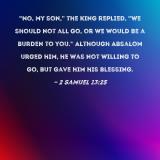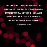 "No, my son," the king replied, "we should not all go, or we would be a burden to you." Although Absalom urged him, he was not willing to go, but gave him his blessing.