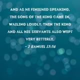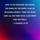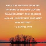 And as he finished speaking, the sons of the king came in, wailing loudly. Then the king and all his servants also wept very bitterly.