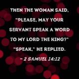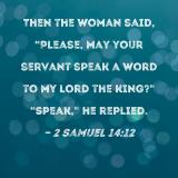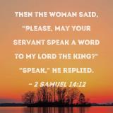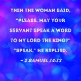 Then the woman said, "Please, may your servant speak a word to my lord the king?" "Speak," he replied.