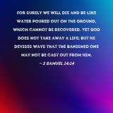 For surely we will die and be like water poured out on the ground, which cannot be recovered. Yet God does not take away a life; but He devises ways that the banished one may not be cast out from Him.