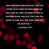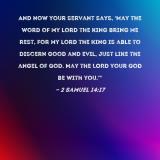 And now your servant says, 'May the word of my lord the king bring me rest, for my lord the king is able to discern good and evil, just like the angel of God. May the LORD your God be with you.'"