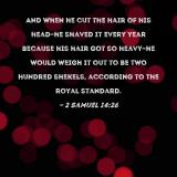 And when he cut the hair of his head--he shaved it every year because his hair got so heavy--he would weigh it out to be two hundred shekels, according to the royal standard.