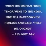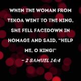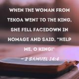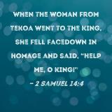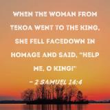 When the woman from Tekoa went to the king, she fell facedown in homage and said, "Help me, O king!"
