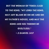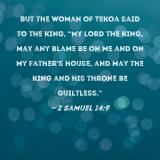But the woman of Tekoa said to the king, "My lord the king, may any blame be on me and on my father's house, and may the king and his throne be guiltless."
