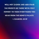 Will not Zadok and Abiathar the priests be there with you? Report to them everything you hear from the king's palace.