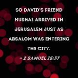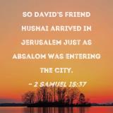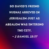 So David's friend Hushai arrived in Jerusalem just as Absalom was entering the city.