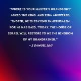"Where is your master's grandson?" asked the king. And Ziba answered, "Indeed, he is staying in Jerusalem, for he has said, 'Today, the house of Israel will restore to me the kingdom of my grandfather.'"