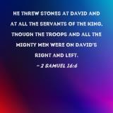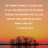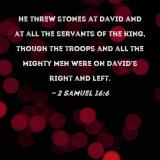He threw stones at David and at all the servants of the king, though the troops and all the mighty men were on David's right and left.